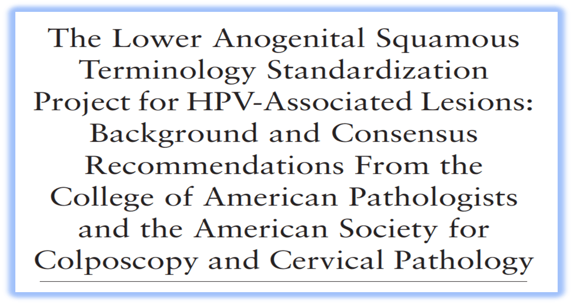 The Lower Anogenital Squamous Terminology Standardization Project for HPV-Associated Lesions: Background and Consensus Recommendations From the College of American Pathologists and the American Society for Colposcopy and Cervical Pathology.