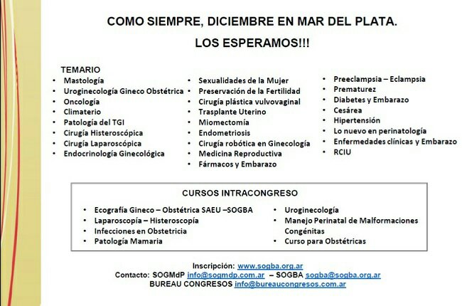 La Sociedad de Obstetricia y Ginecología de la Provincia de Bs. As. (SOGBA) anuncia la realización de su XVIII Congreso Internacional.
