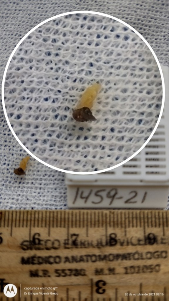 Biopsia Vulvar. Región perineal derecha. Lesión sobrelevada hiperpigmentada.