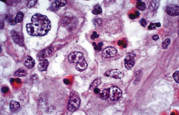 En lo referente a la histología describió e ilustró con detalles a las células características de la enfermedad.